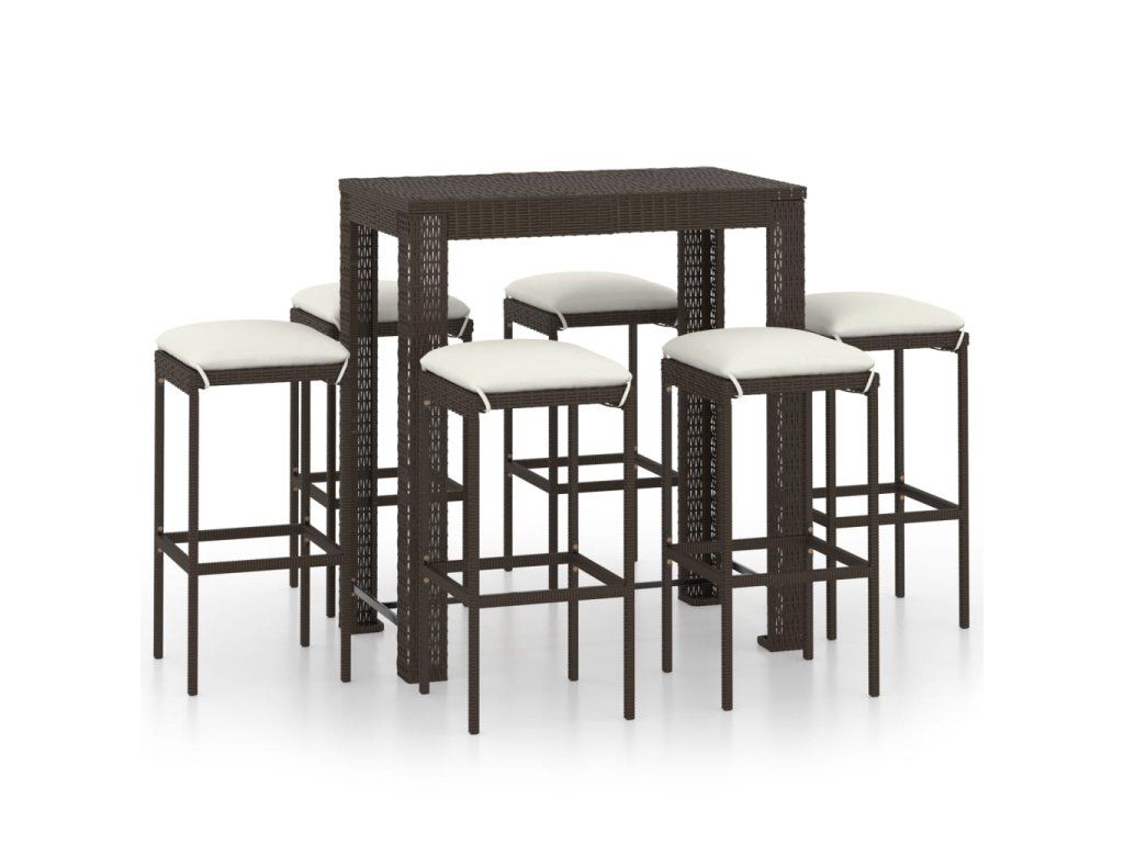Marketos 7dílný zahradní barový set s poduškami polyratan hnědý