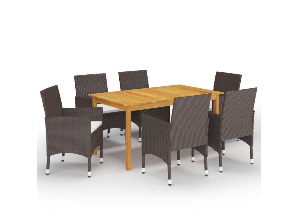 Jídelní stůl je zhotovený z masivního akáciového dřeva s olejovaným povrchem, takže je stabilní, odolný a nenáročný na údržbu. Jídelní židle mají rám z práškově lakované oceli, opletený klimaticky odolným PE ratanem, jsou tudíž odolné a snadno se čistí. Zahradní židle mají zaoblená opěradla a područky, což přispívá k většímu pohodlí, stejně jako jejich ergonomický tvar. Každé křeslo je opatřené odnímatelnou, hustě polstrovanou poduškou, která vám při odpočinku zaručí mimořádný komfort.