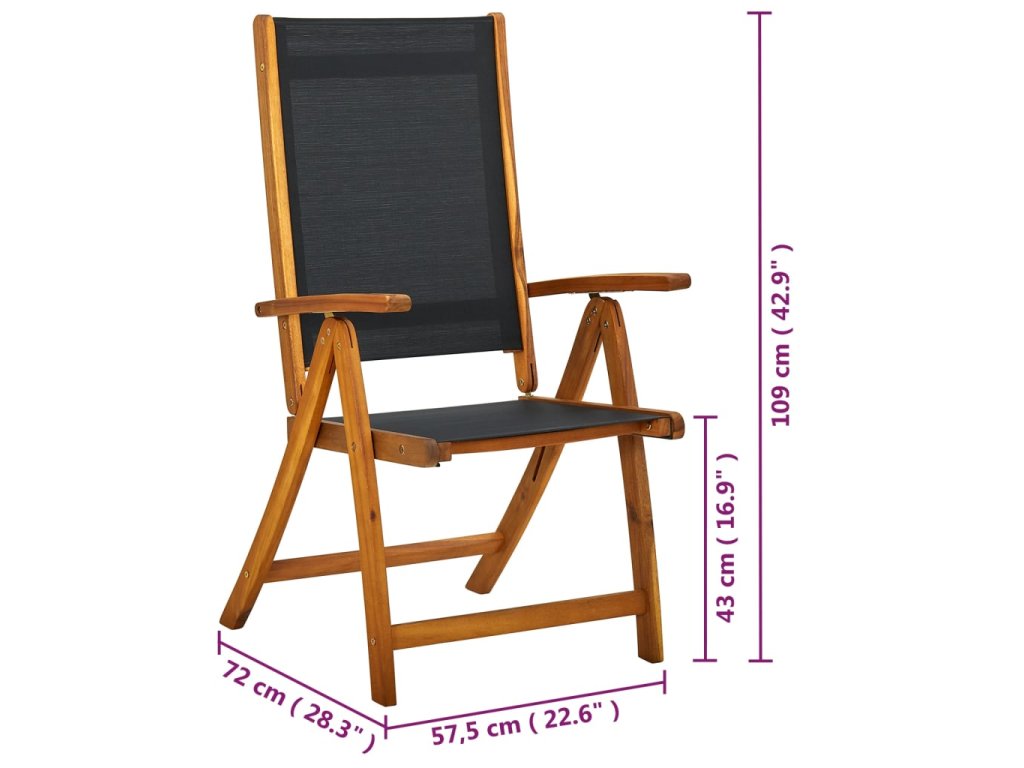 Náš set dřevěného zahradního nábytku se stane ústředním prvkem vaší zahrady, terasy nebo dvora. Rozkládací jídelní stůl je vyrobený z vysoce kvalitního akáciového dřeva, tvrdého tropického dřeva, které je odolné vůči povětrnostním vlivům a trvanlivé. Povrch ošetřený tmavým olejovým nátěrem se snadno čistí vlhkým hadříkem. Židle se dají nastavit do 5 poloh a mají hladké textilenové čalounění, měkké na dotek a odolné vůči povětrnostním vlivům, takže vždy budete moci najít tu pozici, která pro vás bude nejpohodlnější. Pokud je zrovna nepoužíváte, můžete stůl i židle složit, abyste ušetřili místo.