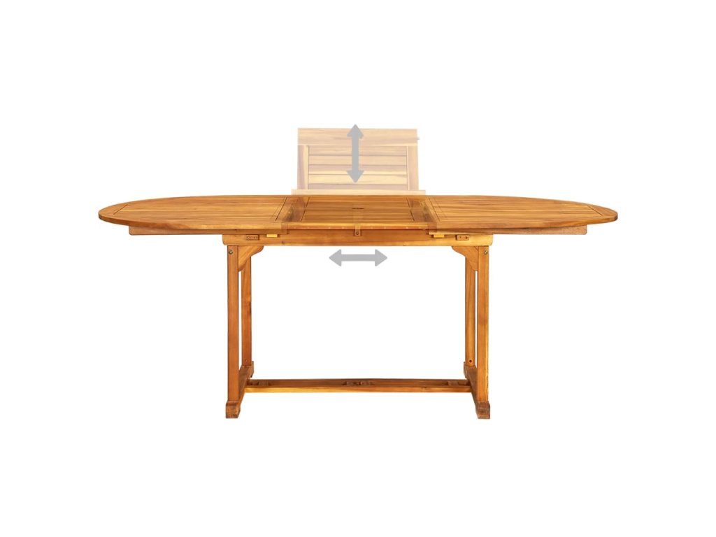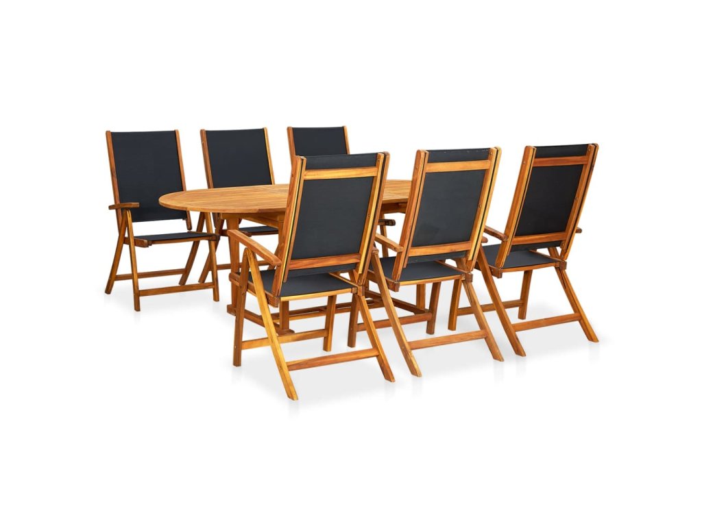 Tento stylový a moderní jídelní set sestává z 1 oválného rozkládacího stolu a 6 skládacích židlí. Bude skvělou volbou pro stolování na čerstvém vzduchu na zahradě nebo na dvoře.
