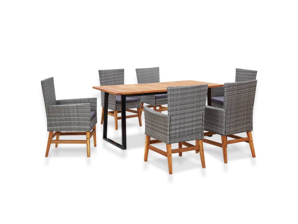 Marketos 7dílný zahradní jídelní set polyratan a akáciové dřevo šedý