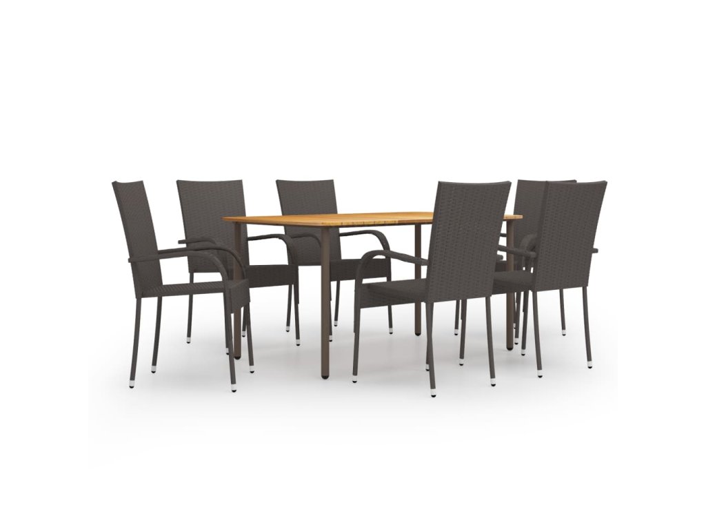 Jídelní stůl je vyrobený z masivního akáciového dřeva a odolné oceli, takže je pevný a stabilní. Olejem napuštěný povrch se hodí i pro venkovní použití. Jídelní židle mají ocelový rám opletený PE ratanem, který výborně vzdoruje klimatickým vlivům, jsou proto robustní a snadno se čistí. Zahradní židle lze stohovat, abyste ušetřili místo, když je zrovna nepoužíváte.