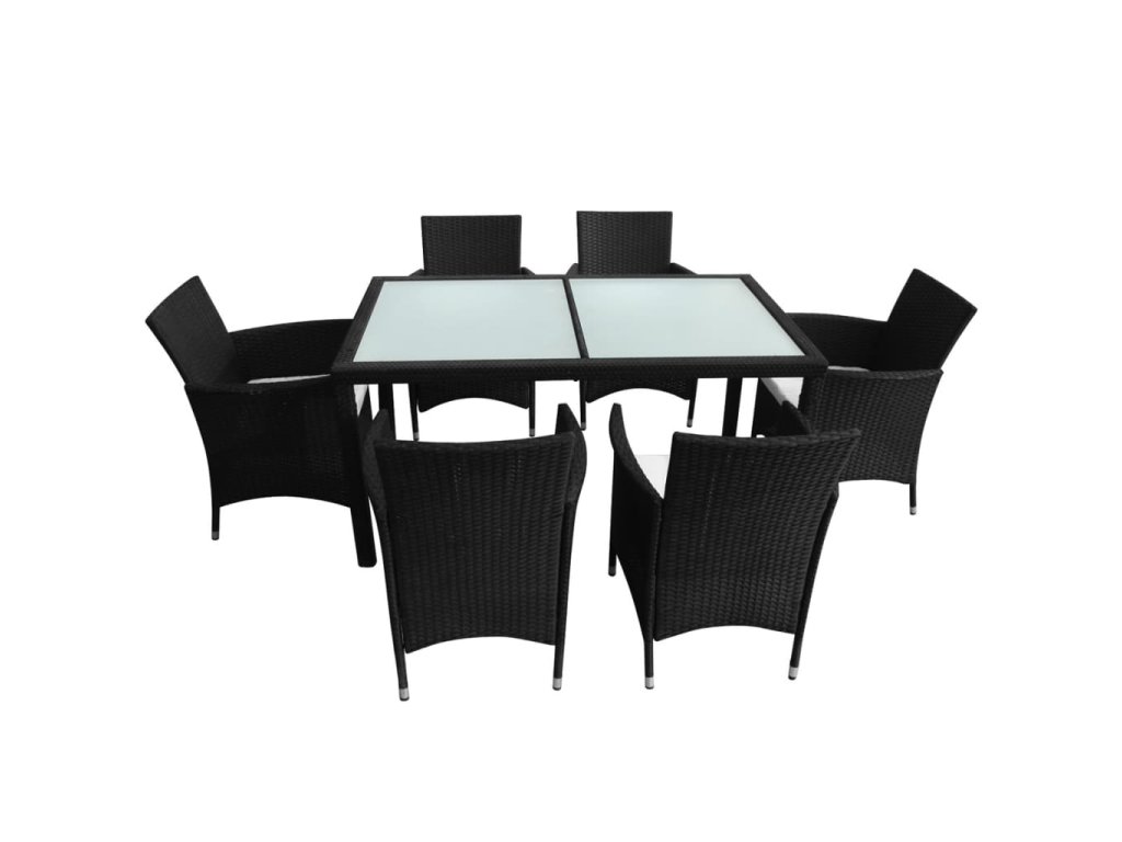 Marketos 7dílný zahradní jídelní set s poduškami polyratan černý