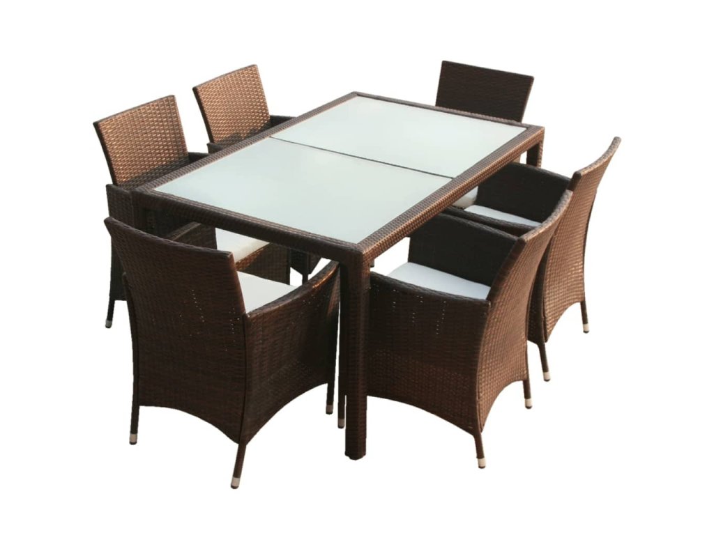 Marketos 7dílný zahradní jídelní set s poduškami polyratan hnědý