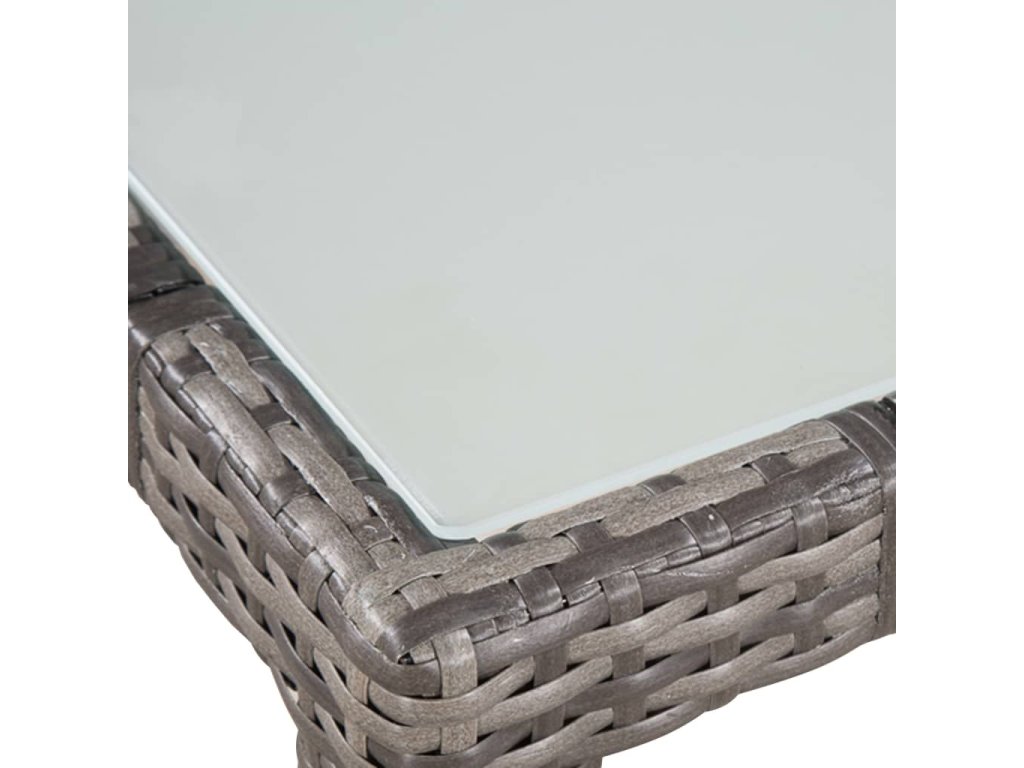 - Materiál: PE ratan + skleněná stolní deska + ocelový rám s práškovým nástřikem