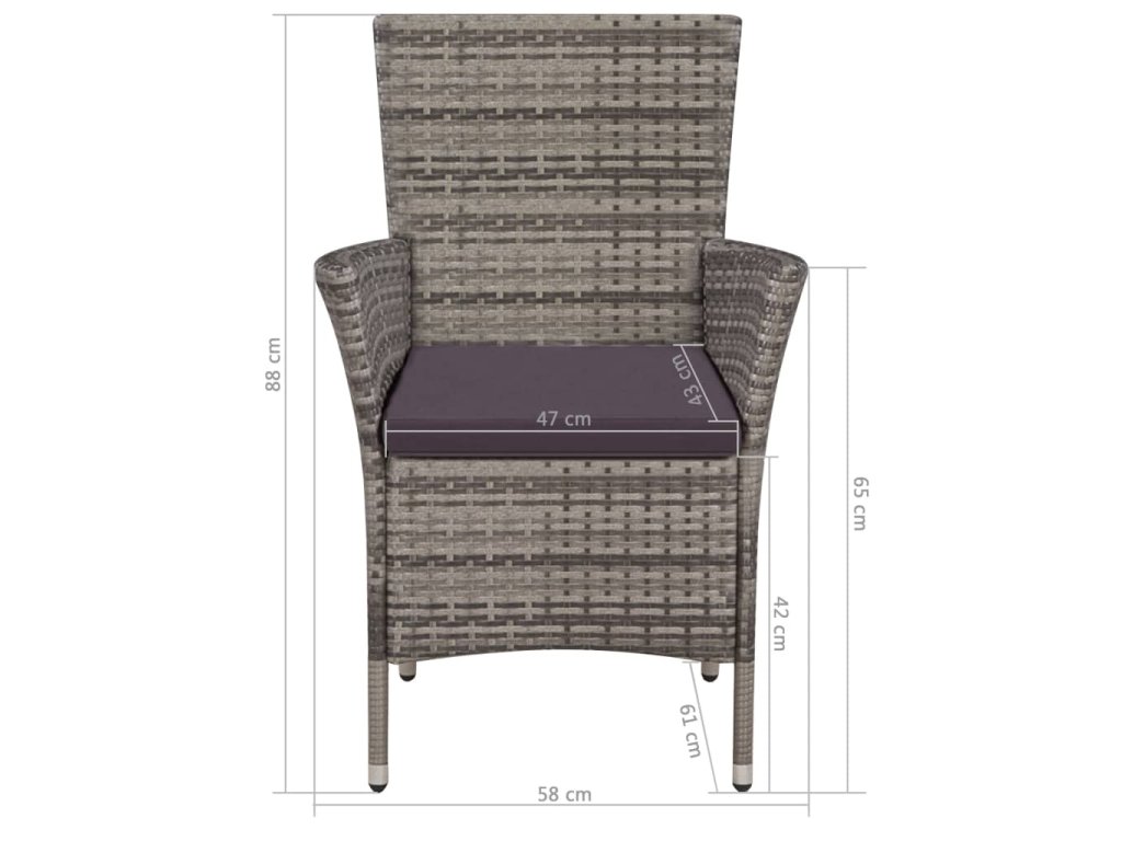 Díky voděodolnému polyratanu se jídelní set snadno čistí, je odolný a vhodný pro každodenní venkovní použití. Ocelové rámy s práškovým nástřikem zajišťují mimořádnou stabilitu stolu i židlí a jejich výtečnou odolnost. Balení obsahuje skleněný jídelní stůl, který ladí s našimi elegantními židlemi. Silně polstrované, odnímatelné podušky s pěnovou výplní vám při sezení poskytnou maximální pohodlí. Polyesterové potahy podušek jsou nenáročné na údržbu a dají se snadno sundat a vyprat. Sestavení zahradního setu je jednoduché. Balení obsahuje 1 stůl, 6 židlí a 6 podušek na sedáky.