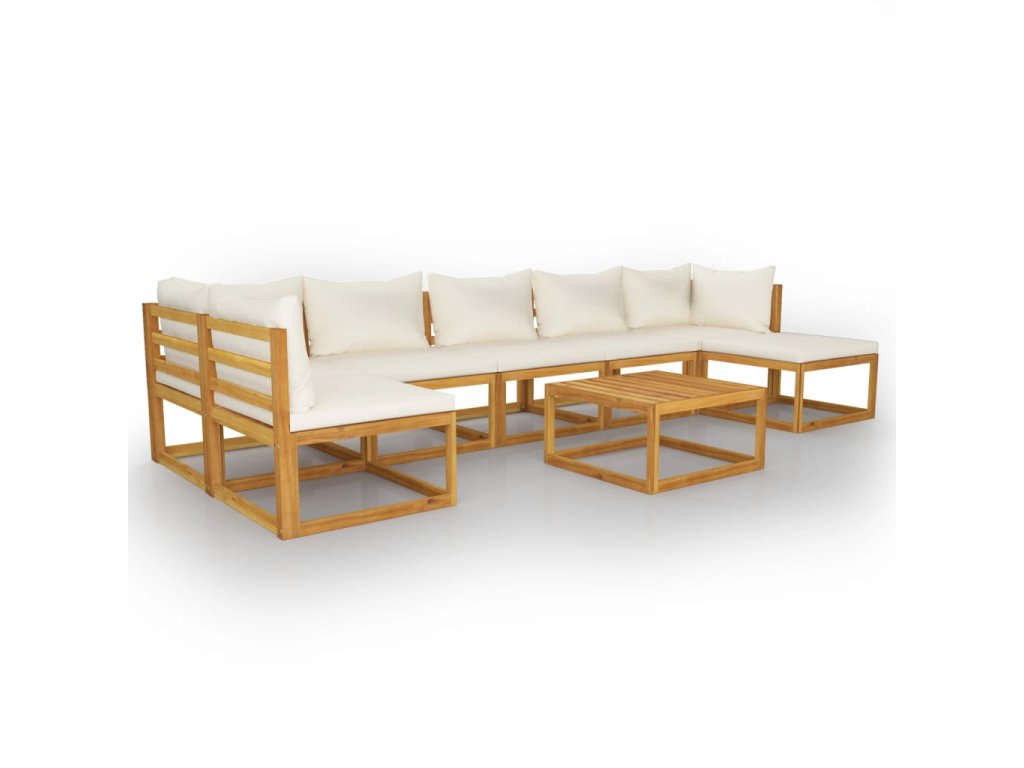 Marketos 8dílná zahradní sedací souprava krémové podušky masivní akácie