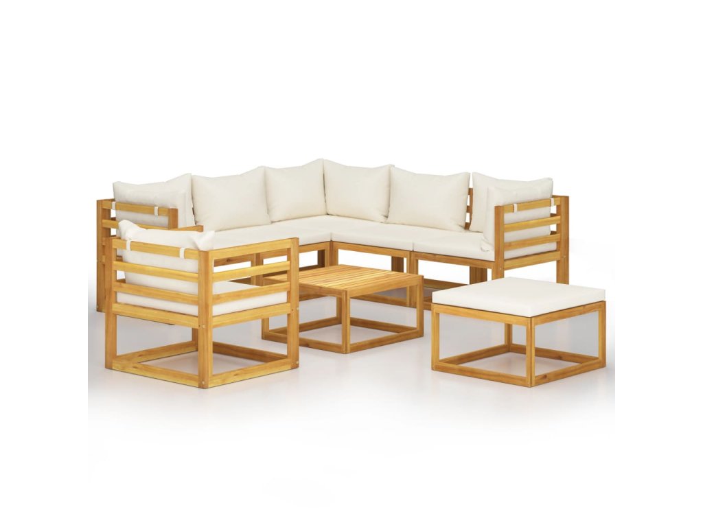 Marketos 8dílná zahradní sedací souprava krémové podušky masivní akácie