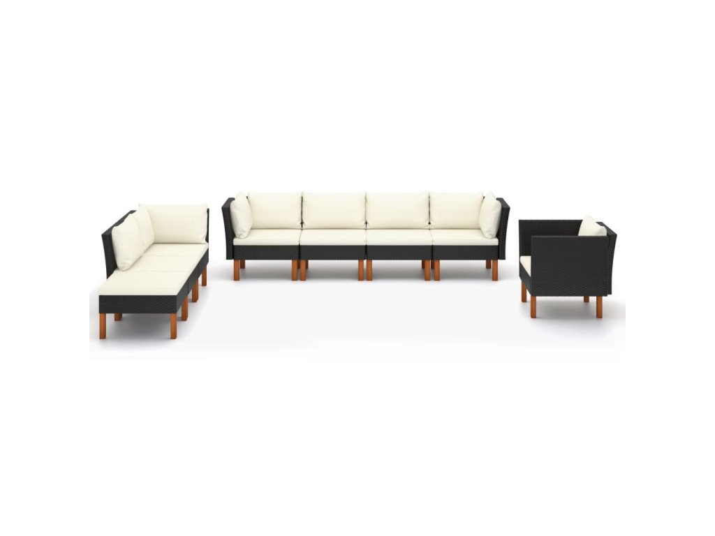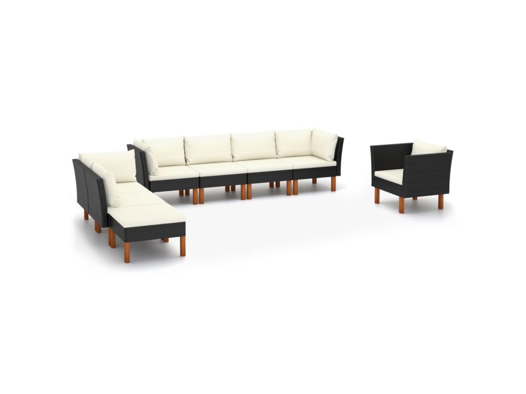 Marketos 8dílná zahradní sedací souprava polyratan a eukalyptus černá