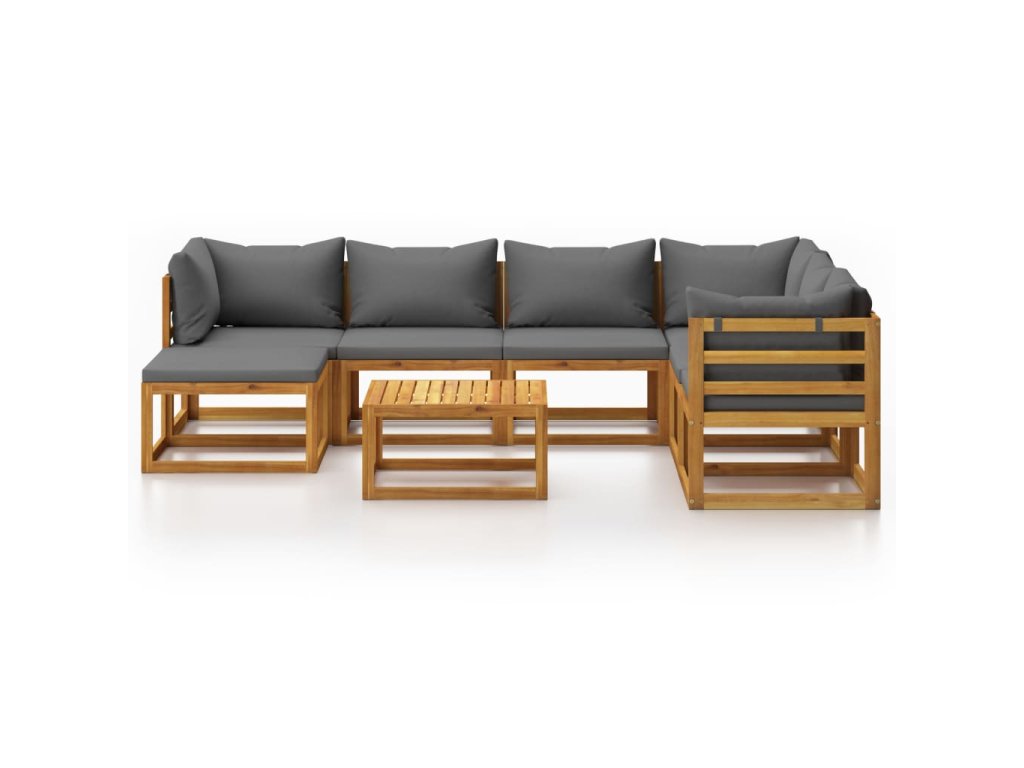 Rám z masivního akáciového dřeva je pevný, odolný a má dlouhou životnost. Dřevo je napuštěné olejem, sedací souprava je proto vhodná i pro venkovní použití. Odnímatelné podušky na sedáky a opěradla jsou silně polstrované, takže se vám na nich bude nesmírně dobře sedět. Součástí balení je také konferenční stolek v unikátním laťkovém provedení. Nevšední modulární design vám umožní všechny díly přestavovat a upravovat dle momentálních potřeb.