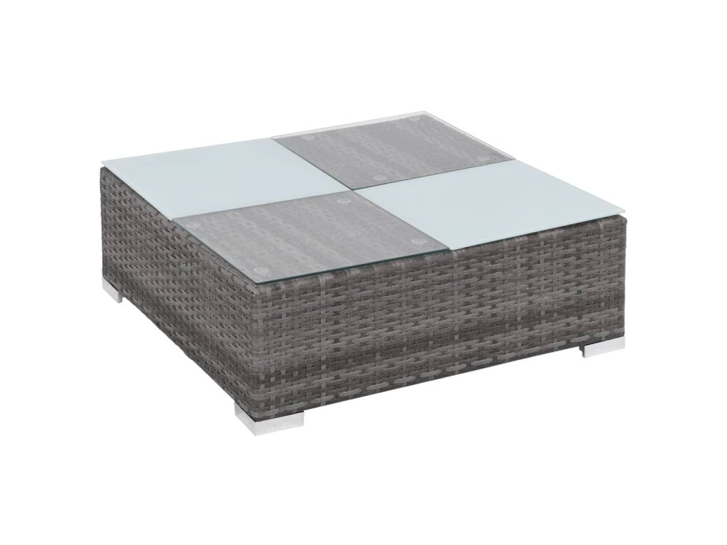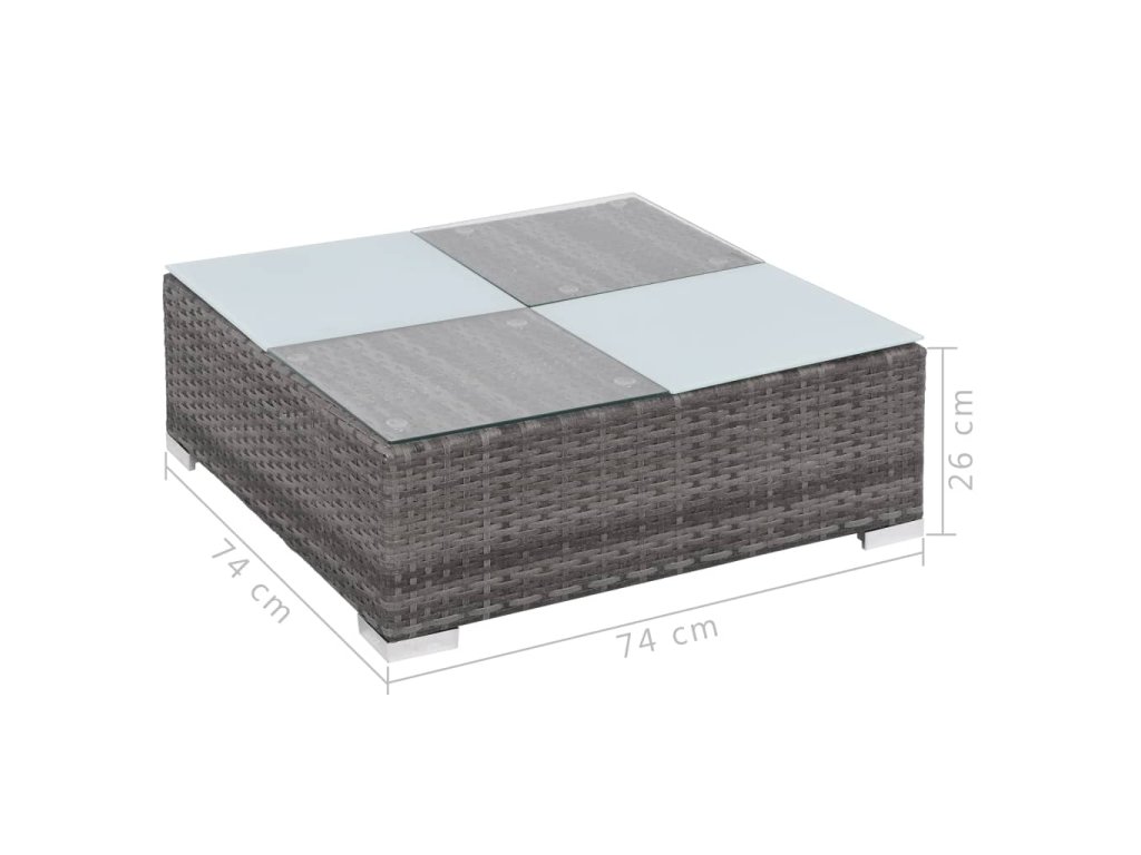 - Materiál: PE (polyetylenový) ratan + skleněná stolní deska + ocelový rám s práškovým nástřikem