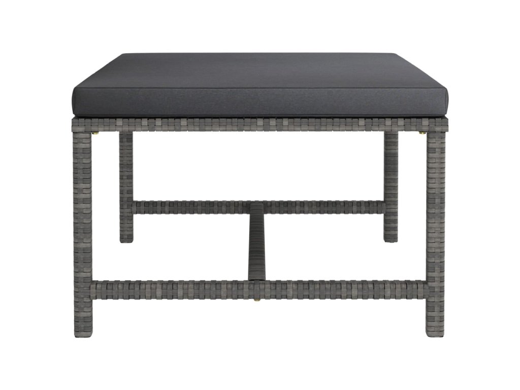Pohodlná zahradní sedací souprava má rám z práškově lakované oceli opletený PE ratanem, takže je odolná a snadno se čistí. Hustě polstrované podušky vám při lenošení zaručí maximální komfort. Jejich potahy mají zapínání na zip, aby se daly jednoduše stáhnout a oprat. Podnožka vám může posloužit také jako konferenční stolek k odkládání nejrůznějších věcí. Celá sada zahradního nábytku má lehkou konstrukci, a tak ji lze bez námahy přesouvat. Kromě toho má modulární design, který vám dává možnost přestavět si set přesně podle vašich představ.