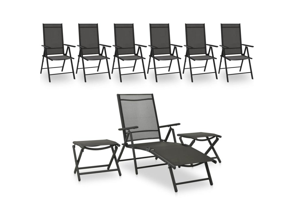 Tato sada zahradního nábytku je vyrobena z hliníkových rámů, je tedy lehká a snadno přenosná. Sedadla z prodyšného textilenu jsou mimořádně pohodlná. Opěradlo lze nastavit do 7 různých poloh, takže si vždy najdete tu nejpohodlnější pozici. Podnožky nabízí skvělý odpočinek pro nohy a mohou také sloužit jako sedátka pro děti. Když je právě nepoužíváte, dají se snadno složit, a tím ušetříte místo.