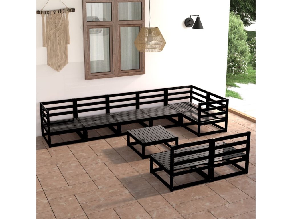 Marketos 9dílná zahradní sedací souprava černá masivní borovice