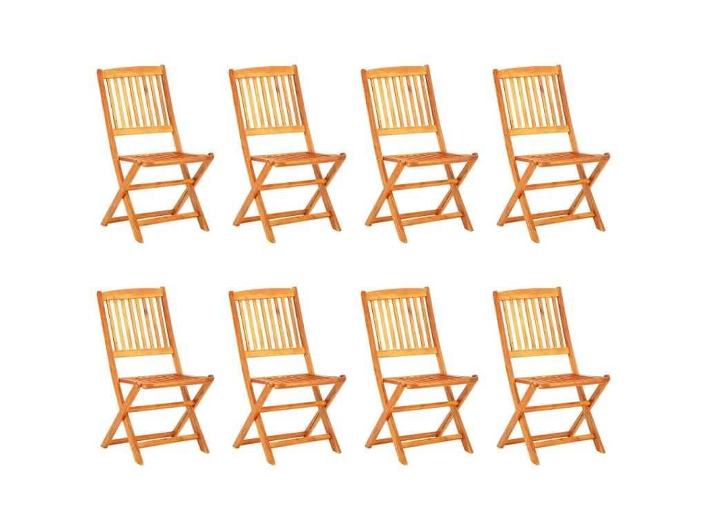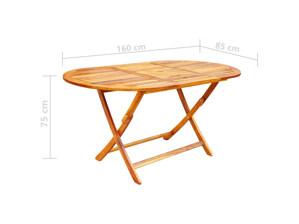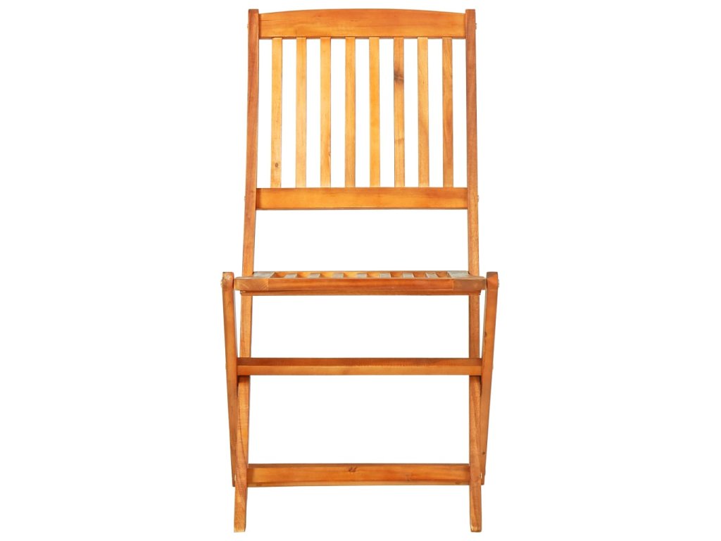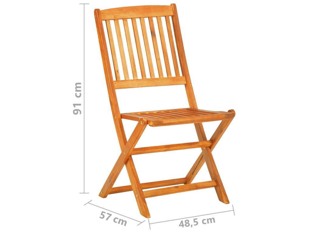 Zahradní jídelní set je vyrobený z masivního akáciového dřeva. Jedná se o tvrdé dřevo z tropů, které je odolné vůči povětrnostním vlivům a má dlouhou životnost. Olejem napuštěný povrch nábytku snadno vyčistíte navlhčeným hadříkem. Jak zahradní židle, tak stůl je možné složit, aby zbytečně nepřekážely, když je zrovna nepoužíváte.