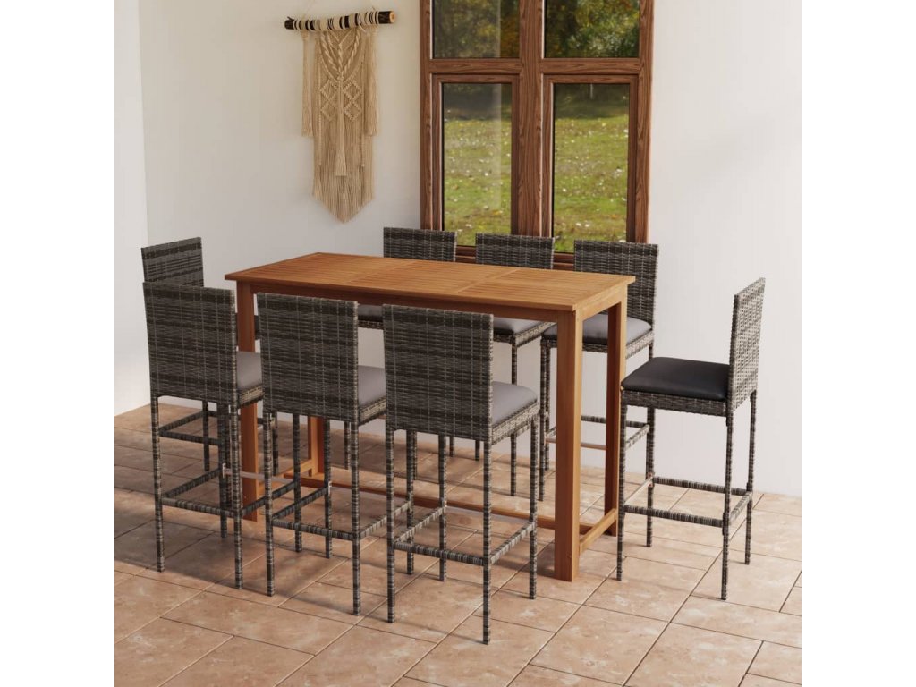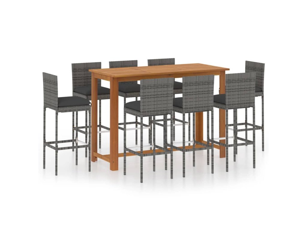 Marketos 9dílný zahradní barový set s poduškami šedý