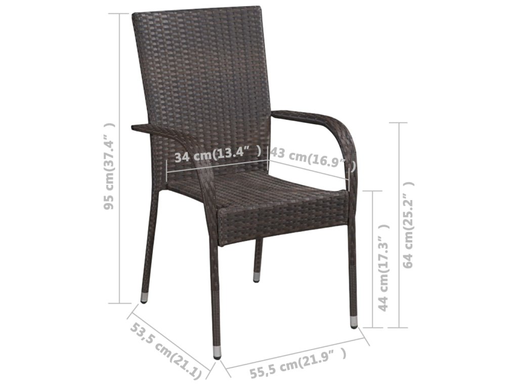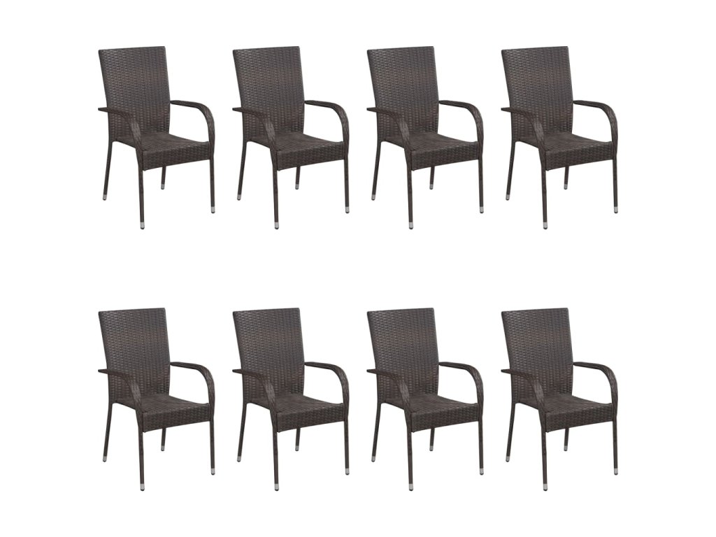 Jídelní stůl je zhotovený z masivního akáciového dřeva s olejovaným povrchem, takže je stabilní, odolný a nenáročný na údržbu. Zahradní židle mají rám z práškově lakované oceli, opletený PE ratanem, který výborně vzdoruje klimatickým vlivům. Dlouho vám proto vydrží a snadno je očistíte. Jídelní židle mají také lehkou konstrukci a lze je stohovat, aby vám zbytečně nepřekážely, když je zrovna nepoužíváte.