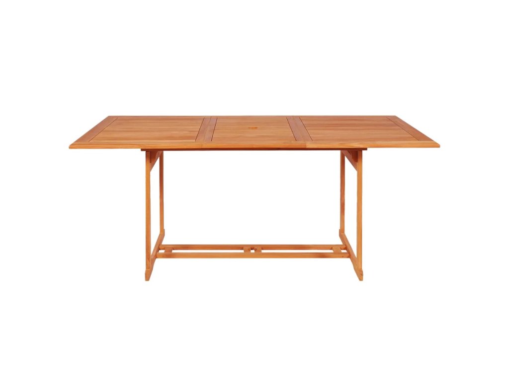 Nábytková sestava má překrásnou povrchovou úpravu, která dřevu dodává hřejivý odstín. Ve stolu se nachází otvor na slunečník, abyste se mohli chránit před sluncem. Zaoblené sedáky a opěradla židlí ideálně kopírují tvar vašeho těla. Židle mají navíc skládací design, aby vám zbytečně nepřekážely, když je zrovna nepoužíváte. Lehká konstrukce usnadňuje jejich přesouvání. Celá sada nábytku vám poskytne maximální pohodlí a zpříjemní vám čas strávený s vaší rodinou a přáteli. K očištění vám přitom postačí navlhčený hadřík.