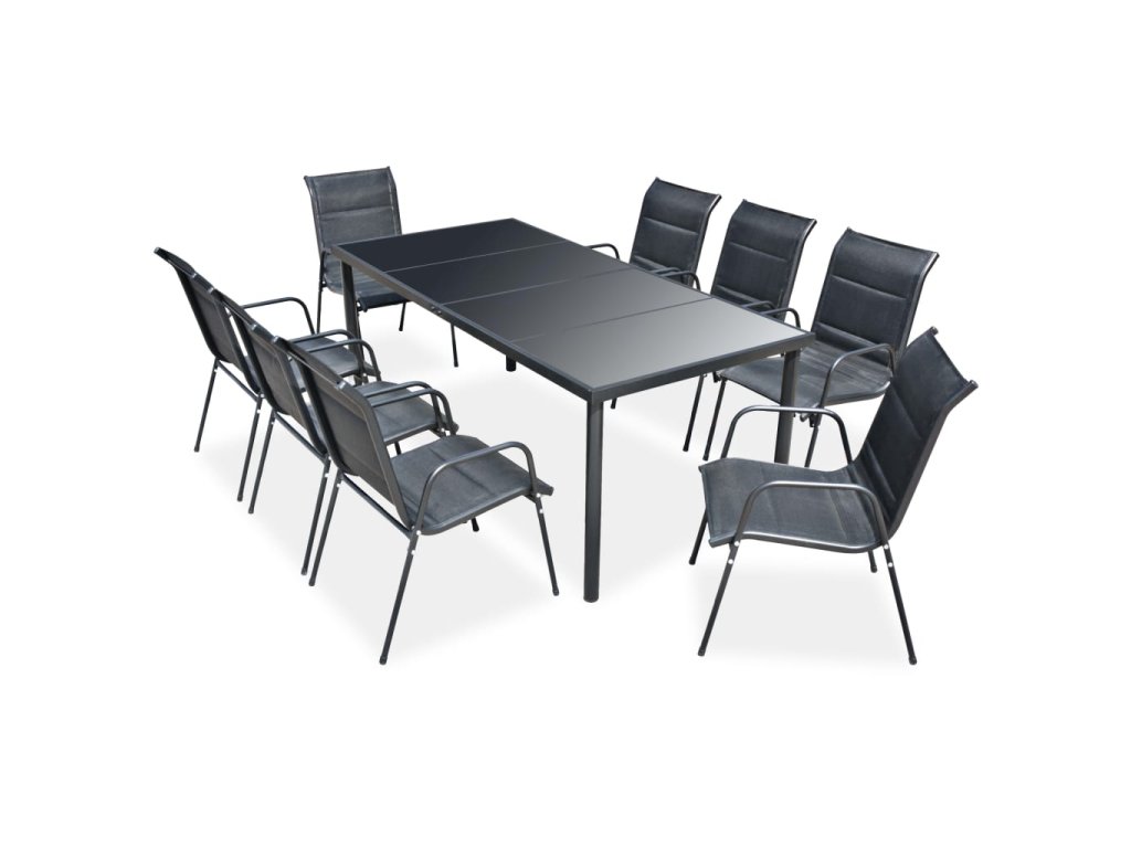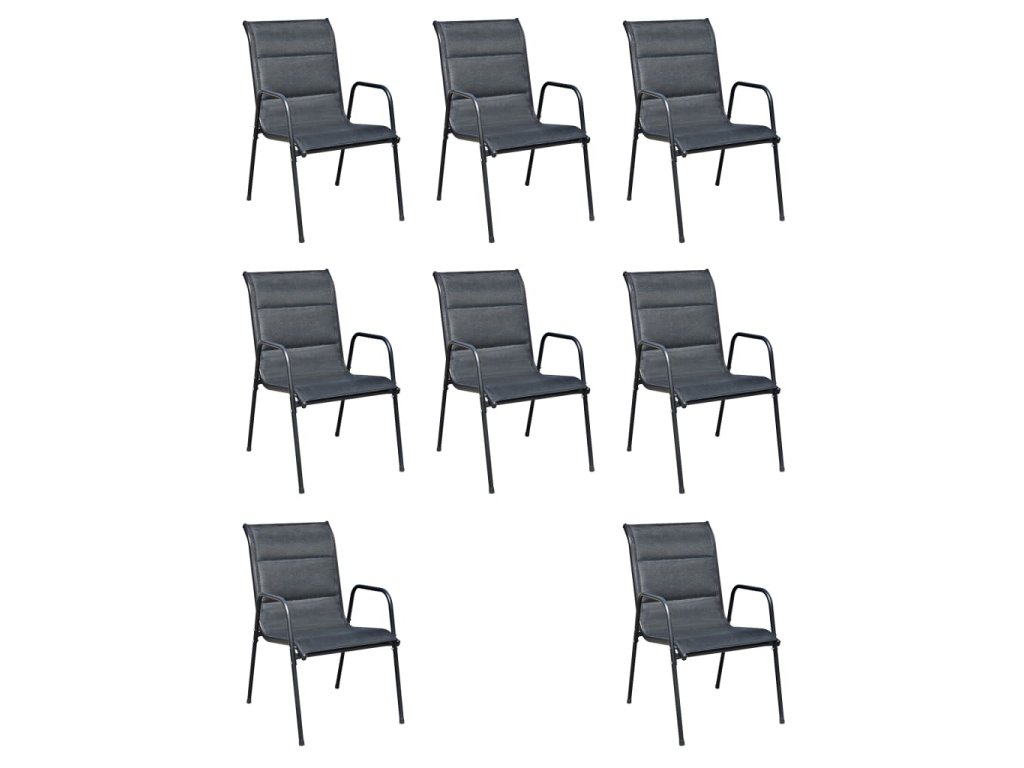 Náš jídelní set se skládá z 1 stolu se skleněnou deskou a 8 textilenových židlí. Jídelní set má stylový design a odolný ocelový rám, a proto je rozhodně perfektní volbou pro váš venkovní prostor. Jednoduchá elegance tohoto jídelního setu vytvoří z každého stolování zvláštní událost.
