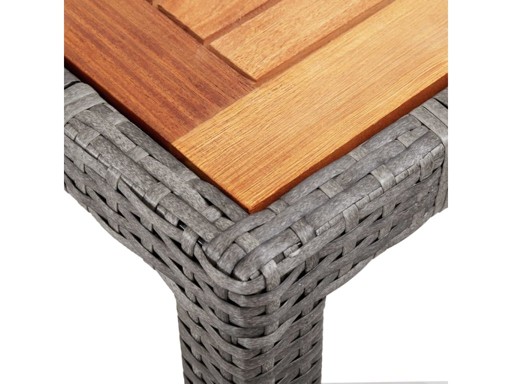 - Materiál: PE ratan + deska stolu a područky z akáciového dřeva + ocelový rám s práškovým nástřikem