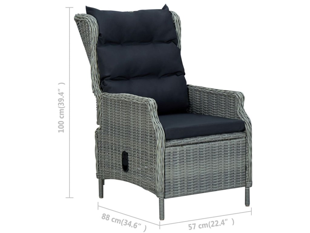 Zahradní nábytek je vyrobený z lehkého kulatého PE ratanu, který nevyžaduje téměř žádnou údržbu a snadno se čistí vlhkým hadříkem. Skvěle se proto hodí pro venkovní použití. Křesla i stůl mají rám z práškově lakované oceli, což jim zajišťuje výtečnou stabilitu a odolnost. Skleněná stolní deska dodá vašemu venkovnímu bydlení nádech luxusu a výborně vám poslouží k podávání večeře nebo k vystavení dekorativních předmětů. Hustě polstrované podušky vám při odpočinku poskytnou maximální pohodlí. Jejich potahy jsou opatřené zipem, aby se vám lépe stahovaly a praly. Mechanismus s plynovým pístem umožňuje nastavit opěradlo do různých pozic. Stisknutím bočního tlačítka můžete opěradlo sklopit a příjemně se natáhnout.