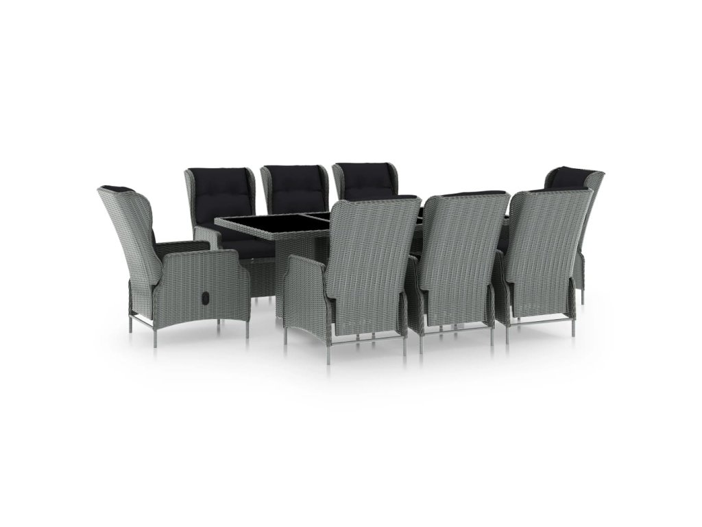 Marketos 9dílný zahradní jídelní set s poduškami polyratan světle šedý