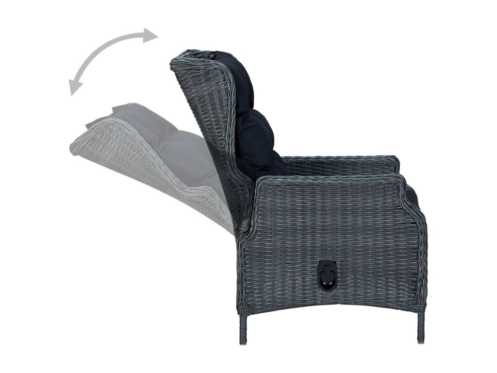 Zahradní nábytek je vyrobený z lehkého kulatého PE ratanu, který nevyžaduje téměř žádnou údržbu a snadno se čistí vlhkým hadříkem. Skvěle se proto hodí pro venkovní použití. Křesla i stůl mají rám z práškově lakované oceli, což jim zajišťuje výtečnou stabilitu a odolnost. Skleněná stolní deska dodá vašemu venkovnímu bydlení nádech luxusu a výborně vám poslouží k podávání večeře nebo k vystavení dekorativních předmětů. Polohovací židle s tlustými poduškami nabízí pohodlné a příjemné místo k odpočinku. Potah podušky je opatřený zipem, aby se vám lépe stahoval a pral. Mechanismus s plynovým pístem umožňuje nastavit opěradlo do různých pozic. Stisknutím bočního tlačítka můžete opěradlo sklopit a příjemně se natáhnout. Židle je jako stvořená k relaxaci, zvlášť když si položíte nohy na sladěnou podnožku, kterou můžete přesouvat podle vašich potřeb.
