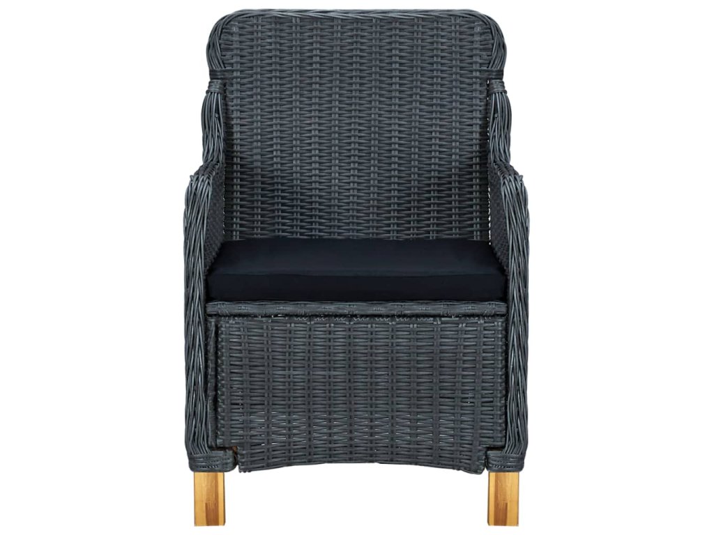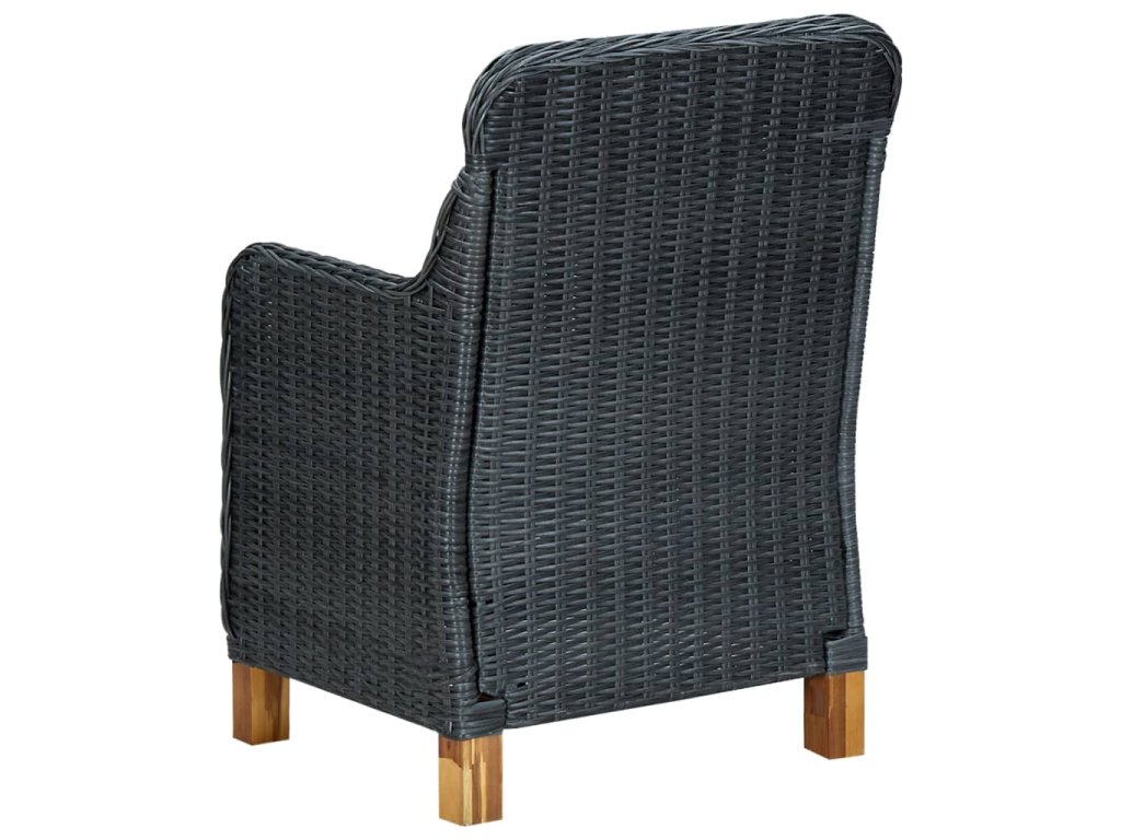 Zahradní nábytek je vyrobený z kulatého PE ratanu, který nevyžaduje téměř žádnou údržbu a snadno se čistí vlhkým hadříkem. Skvěle se proto hodí pro venkovní použití. Křesla i stůl mají rám z práškově lakované oceli, což jim zajišťuje výtečnou stabilitu a odolnost. Robustní stolní deska vám výborně poslouží k odkládání nebo vystavení nejrůznějších věcí. Hustě polstrované podušky vám při odpočinku poskytnou maximální pohodlí. Jejich potahy jsou opatřené zipem, aby se vám lépe stahovaly a praly. Nohy z masivního akáciového dřeva židlím dodávají na pevnosti a lepší rovnováze. Nábytek má lehkou konstrukci, takže ho můžete bez námahy přesouvat.