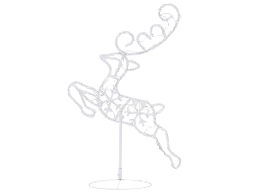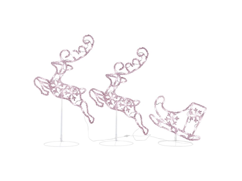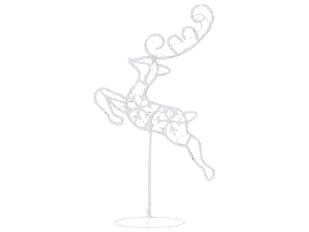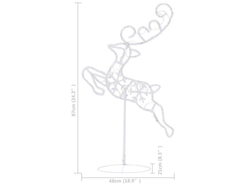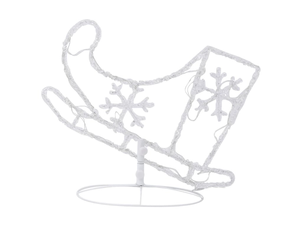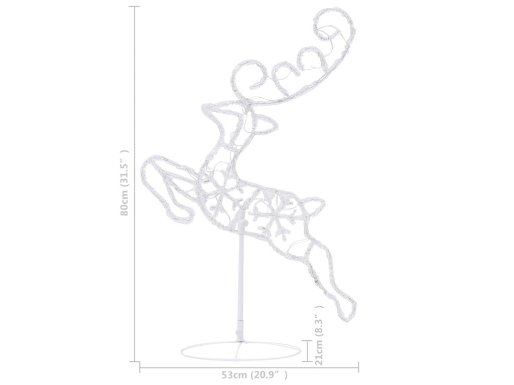 Tato vánoční dekorace je zhotovená z akrylu a vypadá jako vyrobená z ledu. Zářící dekoraci sobů a saní tvoří 72 energeticky účinných LED světel s dlouhou životností. Diody mají 8 různých světelných režimů: kombinace všech, pomalá záře, blikání/mihotání, svícení ve vlnách, efekt tekoucí vody, sekvenční svícení, stálé svícení a pomalé blednutí. Světla se krásně rozzáří a vytvoří kouzelnou sváteční atmosféru. Přiložený stojan zaručí stabilitu.