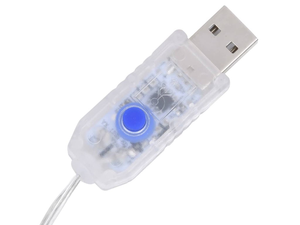 Poznámka: Produkt je vybaven USB konektorem, ale certifikovaný napájecí zdroj 5V USB není součástí dodávky. Dodaný USB konektor není voděodolný a je třeba ho chránit před vodou a vlhkostí. Přesto můžete tyto soby se sáněmi používat venku, protože 5m prodlužovací kabel a samotný produkt jsou voděodolné.
