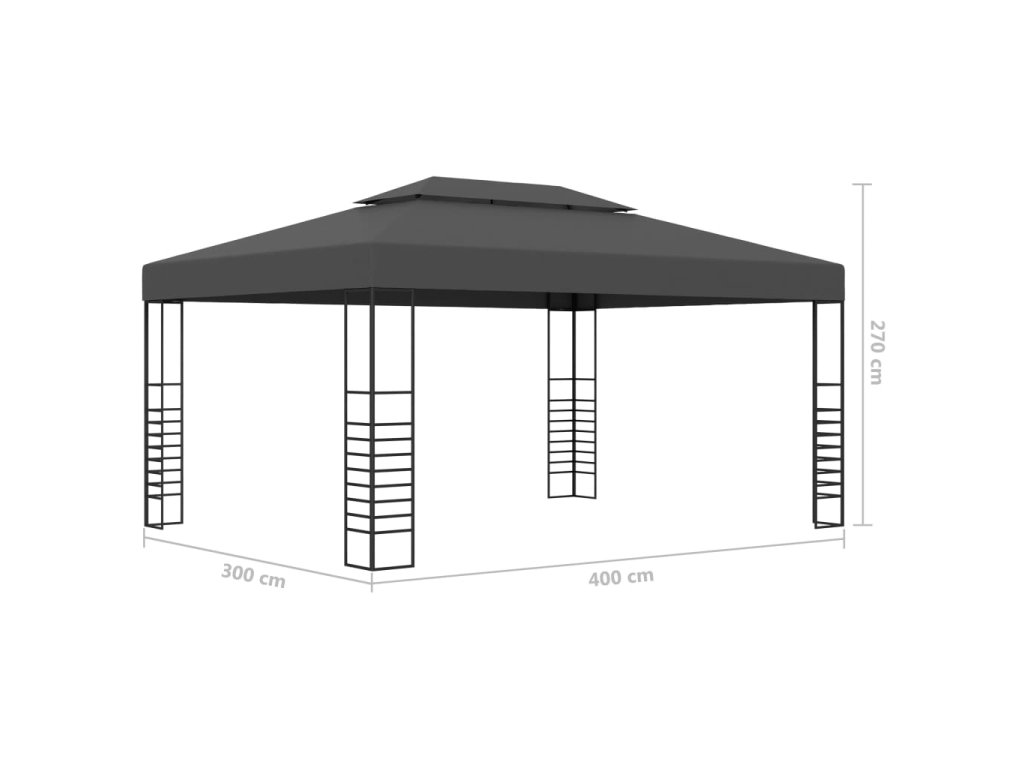 Užijte si své rodinné sešlosti, grilování, odpolední pikniky či narozeninové oslavy bez obav. Tento vzdušný přístřešek vás totiž spolehlivě ochrání před sluncem i deštěm. Má pevnou ocelovou konstrukci s dekorativními čtvercovými ornamenty a střechu ze 100% polyesteru. Sestavení produktu je snadné.