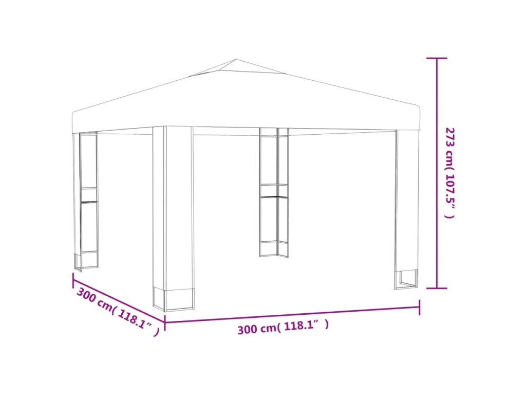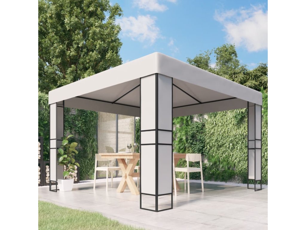 Altán je vyrobený z práškově lakované oceli, je tudíž velice robustní a má dlouhou životnost. Dvojitá střecha je vyrobená ze 100% polyesteru potaženého PA vrstvou, která je voděodolná. Pokud altán nepoužíváte, můžete ji také sejmout a oprat nebo uskladnit.