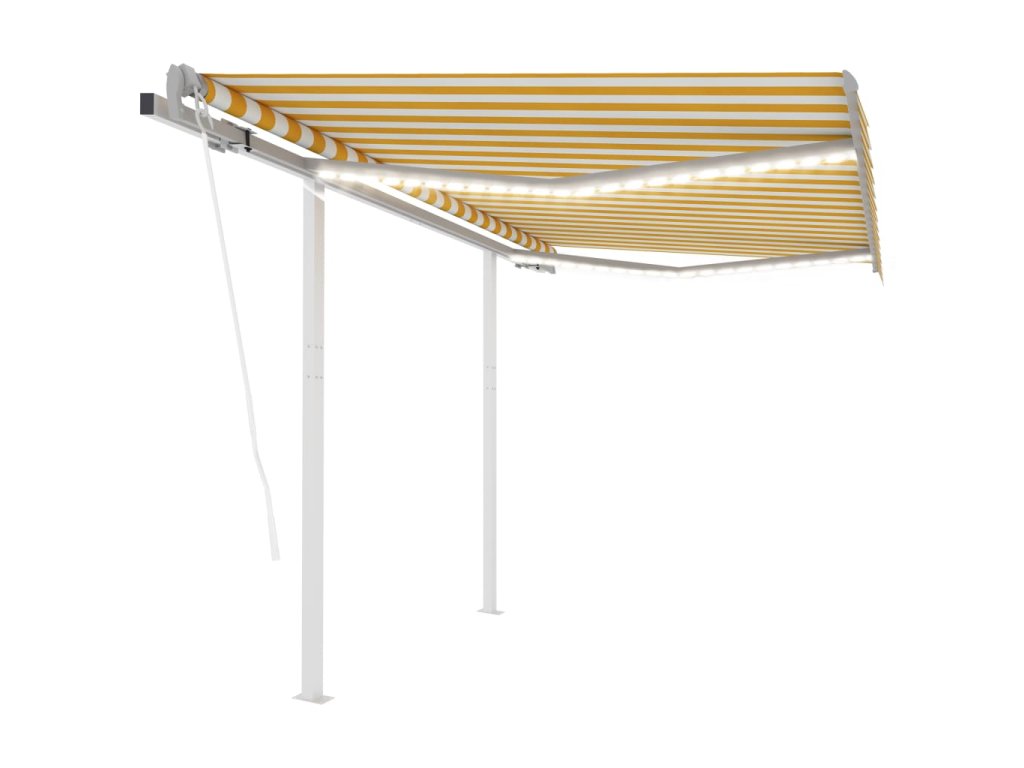 Marketos Automatická markýza LED a senzor větru 3 x 2,5 m žlutobílá