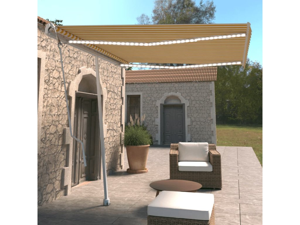 Marketos Automatická markýza LED a senzor větru 300 x 250 cm žlutá/bílá