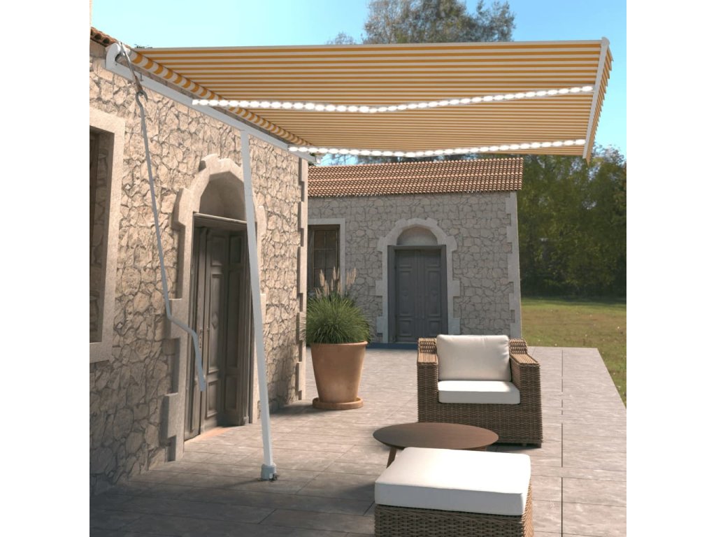 Marketos Automatická markýza LED a senzor větru 350 x 250 cm žlutá/bílá