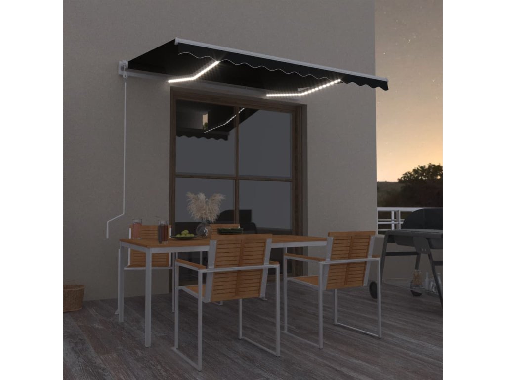 Marketos Automatická markýza LED a senzor větru 350x250 cm antracitová