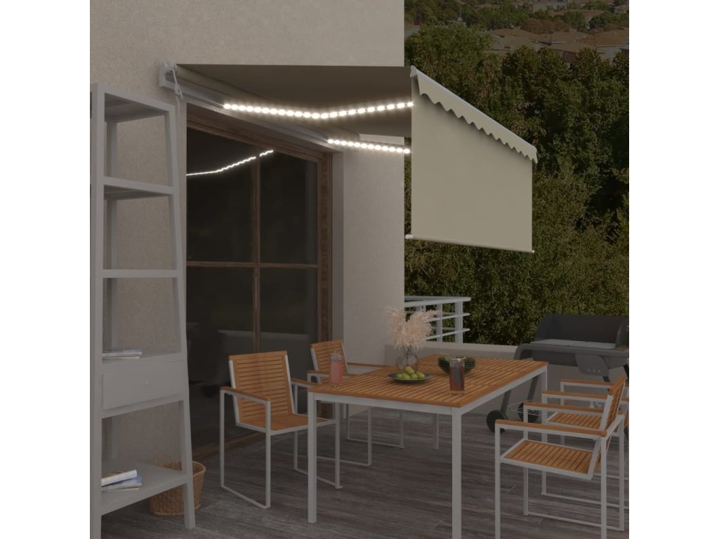 Marketos Automatická markýza roleta LED a senzor větru 3x2,5 m krémová