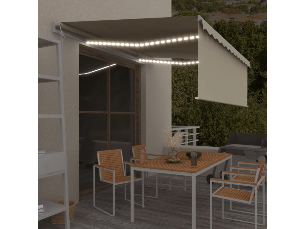 Marketos Automatická markýza roleta LED a senzor větru 4 x 3 m krémová