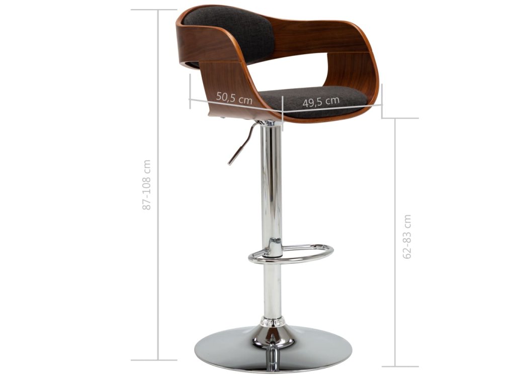 Židle je polstrovaná na dotek měkkou a příjemnou látkou, která je zárukou optimálního pohodlí. Rám z ohýbaného dřeva jí dodává na kráse i stylovosti. Pochromovaná kovová podstava židle zaručuje mimořádnou odolnost a vestavěná opěrka na nohy vám poskytne dodatečný komfort. Vzhledem k ergonomickému tvaru se na židli můžete pohodlně uvelebit na celé hodiny. Mechanismus s plynovým pístem umožňuje nastavovat její výšku. Barová židlička představuje dokonalý doplněk do každého funkčního baru či jídelny.