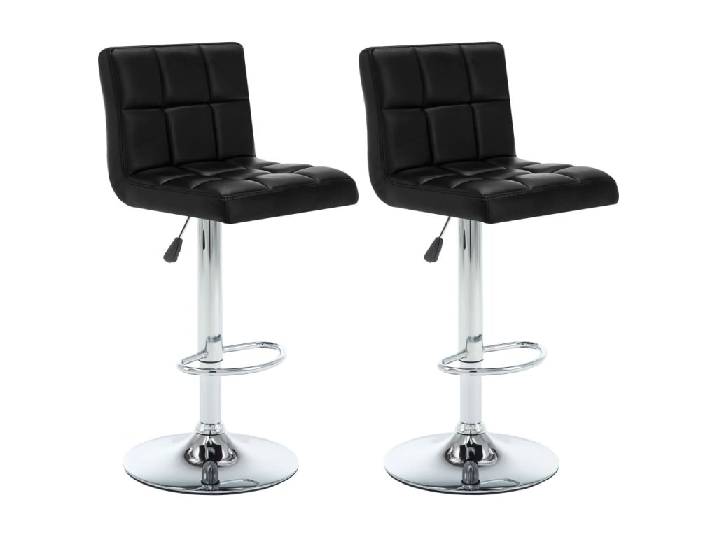 Sedák i opěradlo jsou čalouněné kvalitní umělou kůží, takže se vám na nich bude velmi pohodlně sedět. Pevný rám z chromované oceli navíc židlím zajišťuje mimořádnou odolnost a dlouhou životnost. Praktický mechanismus s plynovým pístem umožňuje nastavit si výšku stoličky dle vašich potřeb. Zabudovaná opěrka nohou vám zase při sezení poskytne dodatečnou oporu a maximální komfort.
