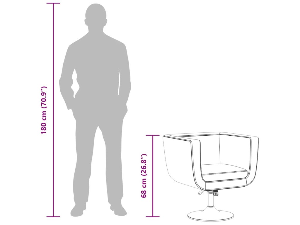 Toto uhlazené a rafinované otočné křeslo je elegantním kusem nábytku s ostrými, čistými liniemi a módním designem. Je perfektní do každého obývacího pokoje, studentského pokoje, haly nebo kanceláře!