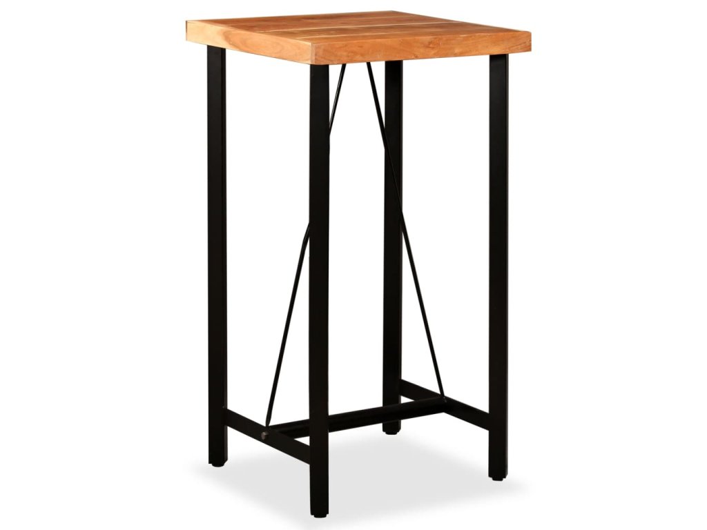Barový stůl je vyrobený z masivního akáciového dřeva, které je odolné, stabilní a snadno se čistí. Stůl je celý ručně vyrobený a překrásná kresba dřeva dává každému kusu nábytku jeho jedinečný a od ostatních lehce odlišný charakter. Silné ocelové nohy přidávají stolu na stabilitě a odolnosti a navíc umocňují jeho působivý industriální styl.