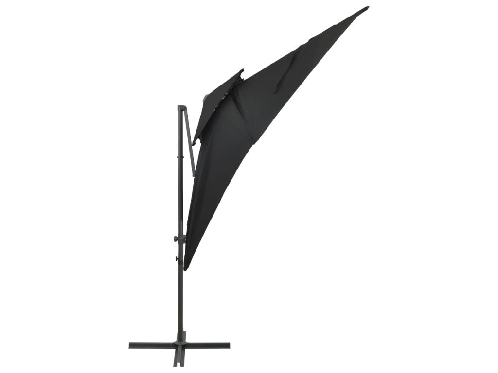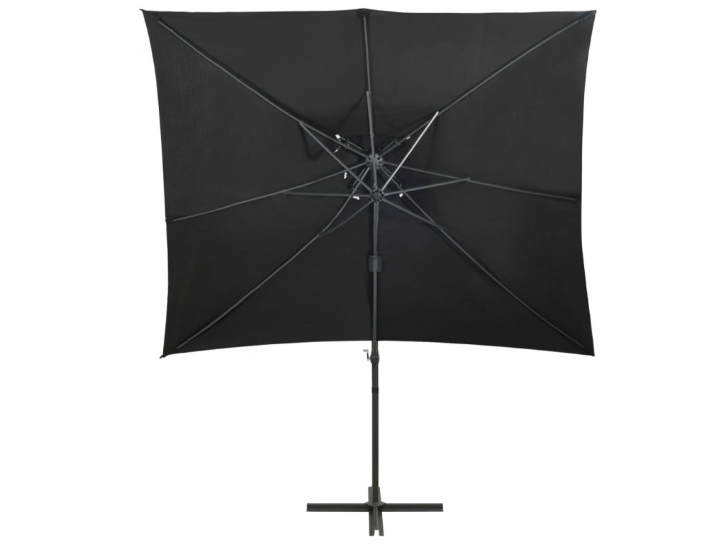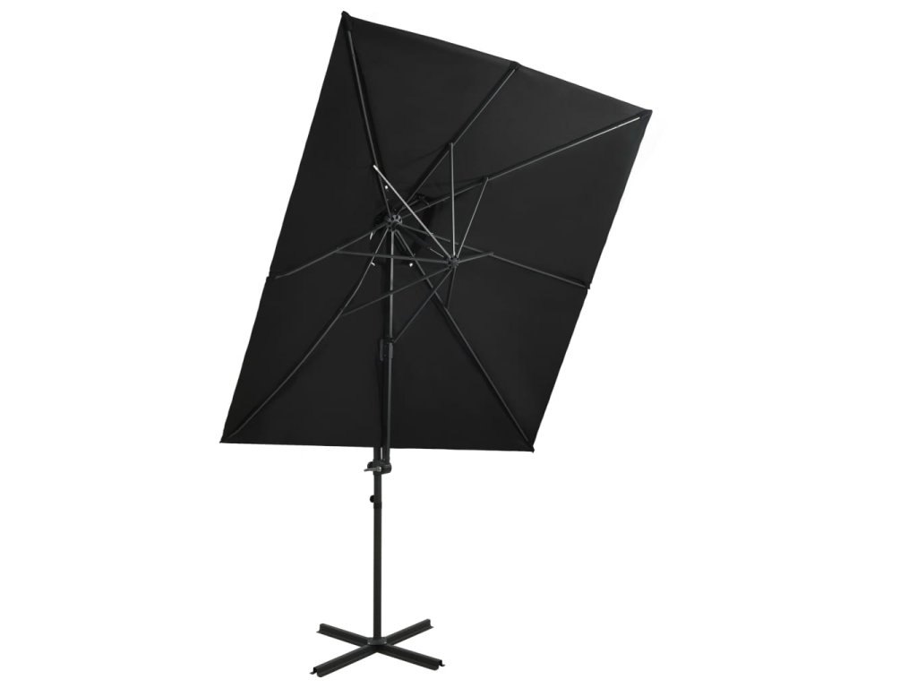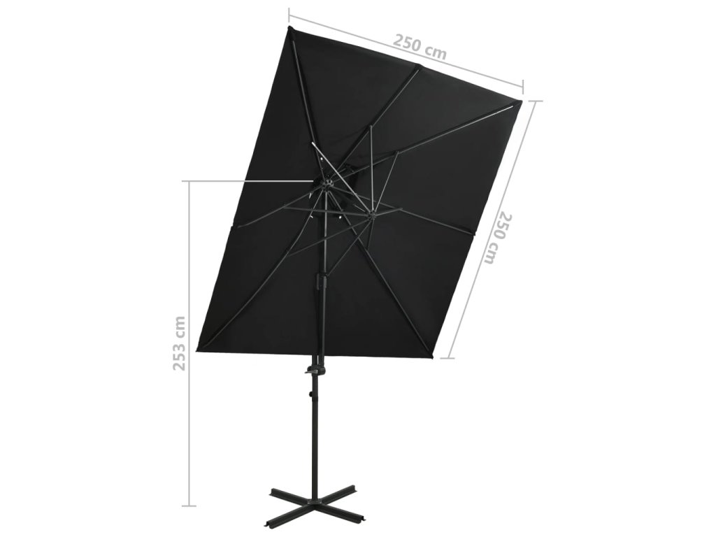 Marketos Boční zahradní slunečník s dvojitou stříškou černý 250 x 250 cm