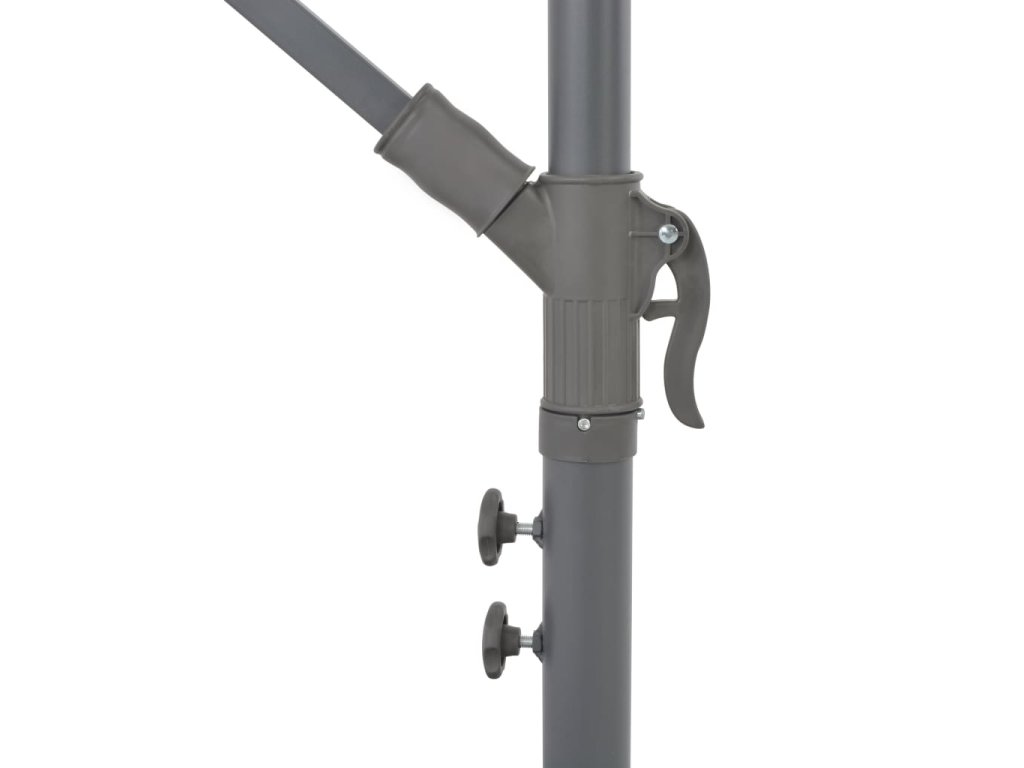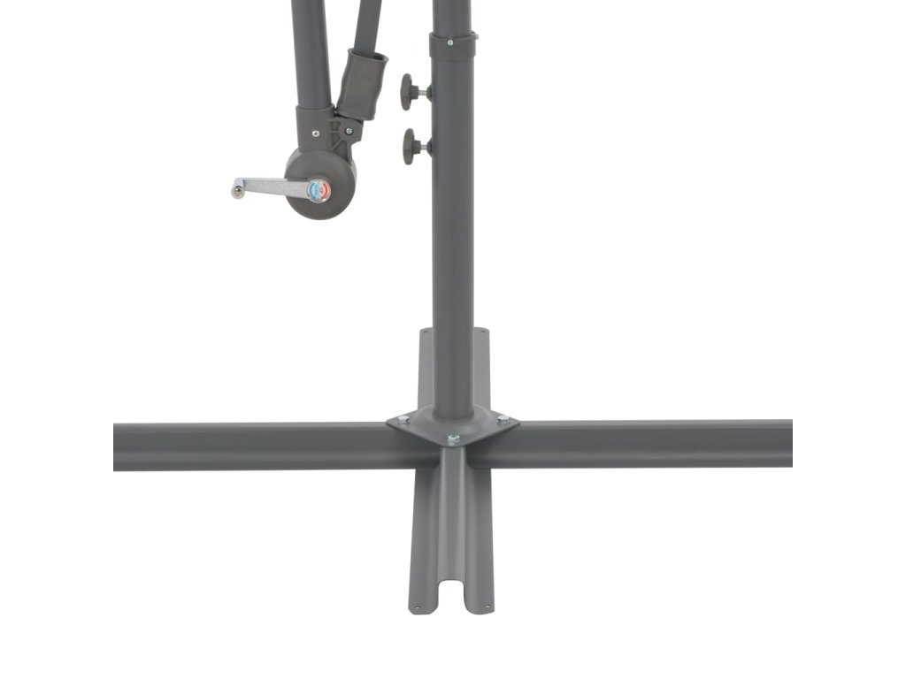 Stříška slunečníku je vyrobena z polyesterové tkaniny, která nepropouští škodlivé UV záření a nevybledne, a poskytne vám optimální ochranu před sluncem. Navíc se snadno čistí. Je vybavena pevnou křížovou základnou pro větší stabilitu. Exkluzivní konstrukce tohoto slunečníku vám umožní naklonit ho tak, aby blokoval slunce, jak klesá za obzor. Silná kovová tyč se 6 odolnými žebry zajišťuje, že se slunečník nehýbe a hodně toho vydrží. Náš zahradní slunečník disponuje klikovým mechanismem, což znamená, že se snadno otevírá i zavírá. Sestavení výrobku je jednoduché.