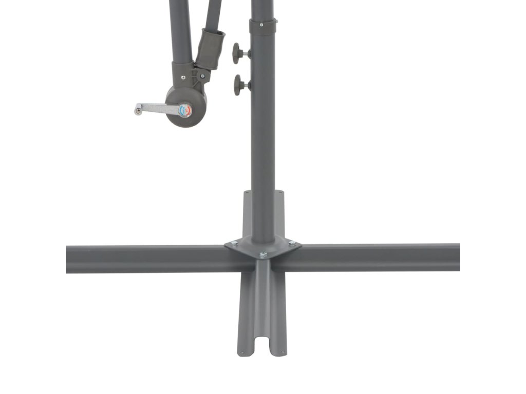 Stříška slunečníku je vyrobena z polyesterové tkaniny, která nepropouští škodlivé UV záření a nevybledne, a poskytne vám optimální ochranu před sluncem. Navíc se snadno čistí. Je vybavena pevnou křížovou základnou pro větší stabilitu. Exkluzivní konstrukce tohoto slunečníku vám umožní naklonit ho tak, aby blokoval slunce, jak klesá za obzor. Silná kovová tyč se 6 odolnými žebry zajišťuje, že se slunečník nehýbe a hodně toho vydrží. Náš zahradní slunečník disponuje klikovým mechanismem, což znamená, že se snadno otevírá i zavírá. Sestavení výrobku je jednoduché.
