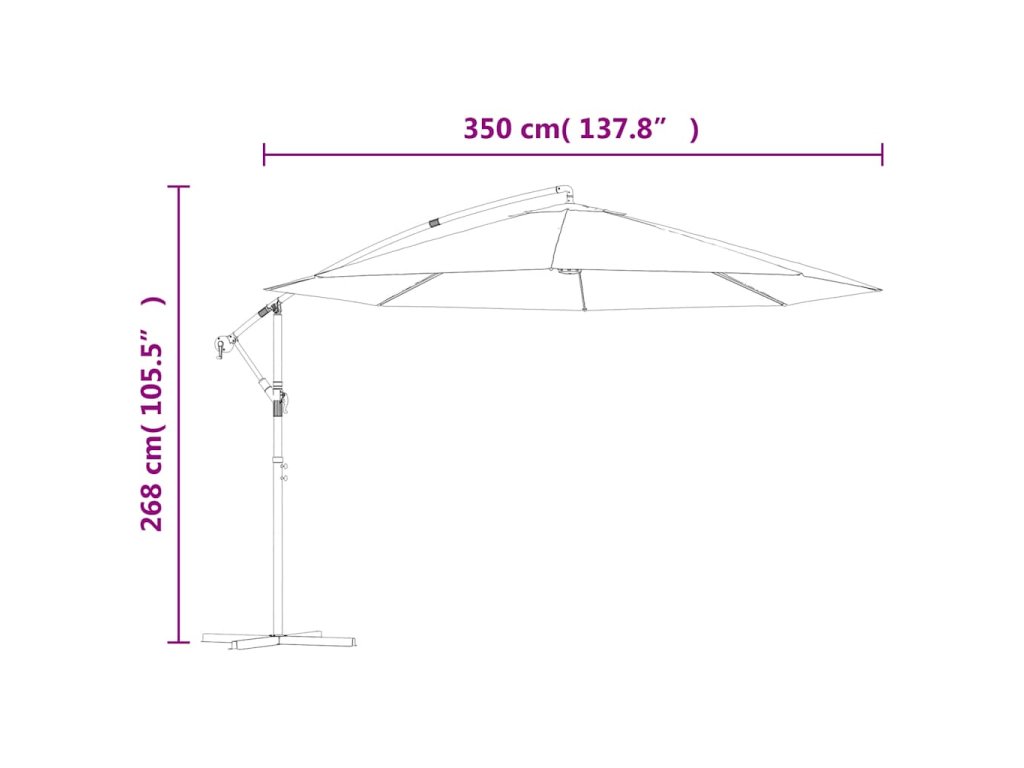 Stříška slunečníku je vyrobena z polyesterové tkaniny, která nepropouští škodlivé UV záření a nevybledne, a poskytne vám optimální ochranu před sluncem. Navíc se snadno čistí. Je vybavena pevnou křížovou základnou pro větší stabilitu. Exkluzivní konstrukce tohoto slunečníku vám umožní naklonit ho tak, aby blokoval slunce, jak klesá za obzor. Silná kovová tyč s 8 odolnými žebry zajišťuje, že se slunečník nehýbe a hodně toho vydrží. Náš zahradní slunečník disponuje klikovým mechanismem, což znamená, že se snadno otevírá i zavírá. Sestavení výrobku je jednoduché.
