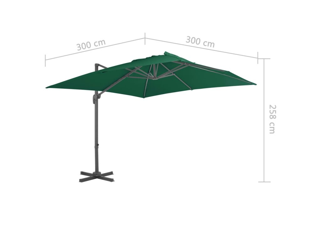 Marketos Boční zahradní slunečník s hliníkovou tyčí zelený 300 x 300 cm