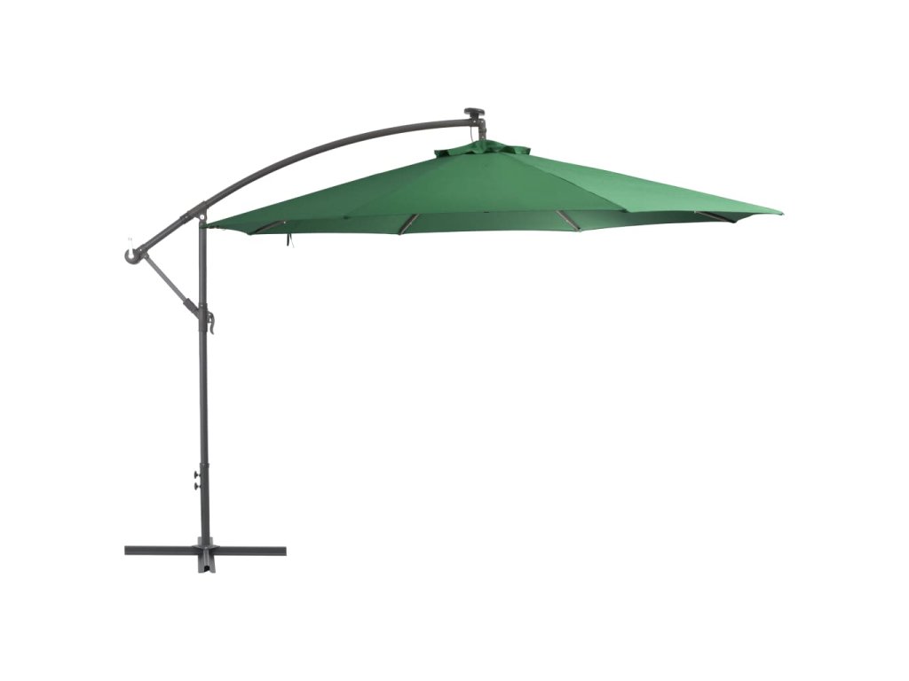Marketos Boční zahradní slunečník s LED a kovovou tyčí 350 cm zelený