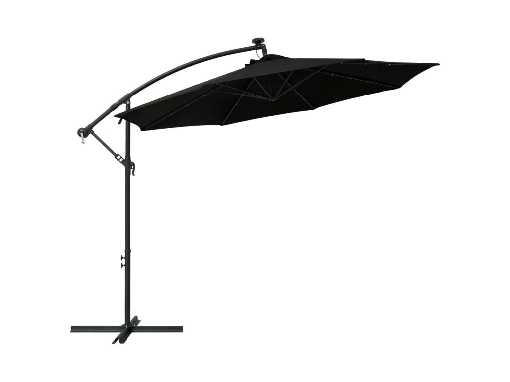 Marketos Boční zahradní slunečník s LED a ocelovou tyčí 300 cm černý