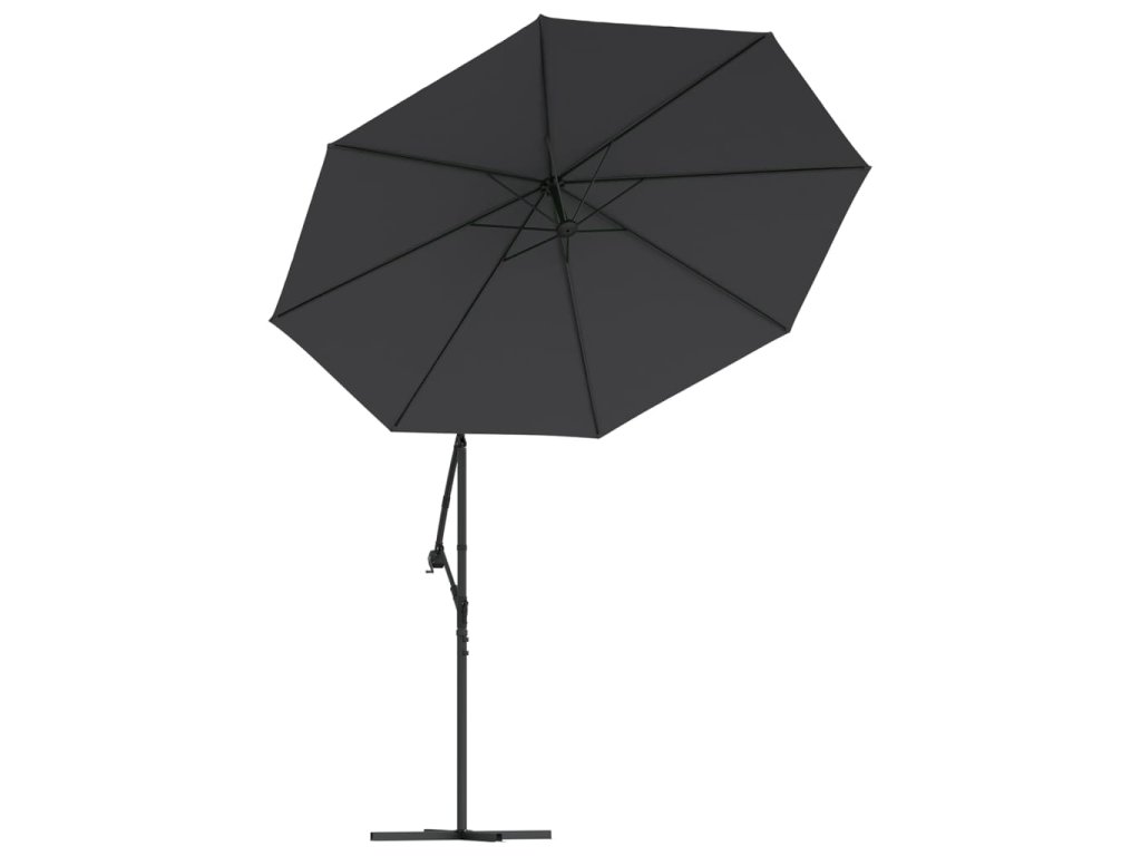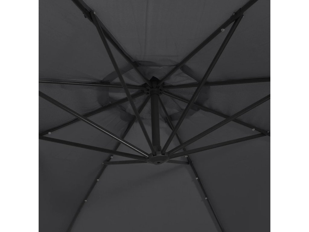 Stříška slunečníku je vyrobena z polyesterové tkaniny, která nepropouští škodlivé UV záření a nevybledne, a poskytne vám optimální ochranu před sluncem. Navíc se snadno čistí. Je vybavena 24 solárně napájenými LED světly, která po západu slunce automaticky osvětlí váš venkovní prostor a navodí v něm útulnou a romantickou atmosféru. Součástí je také pevná křížová základna pro větší stabilitu. Exkluzivní konstrukce tohoto slunečníku vám umožní naklonit ho tak, aby blokoval slunce, jak klesá za obzor. Silná ocelová tyč s 8 odolnými žebry zajišťuje, že se slunečník nehýbe a hodně toho vydrží. Náš zahradní slunečník disponuje klikovým mechanismem, což znamená, že se snadno otevírá i zavírá. Sestavení výrobku je snadné.